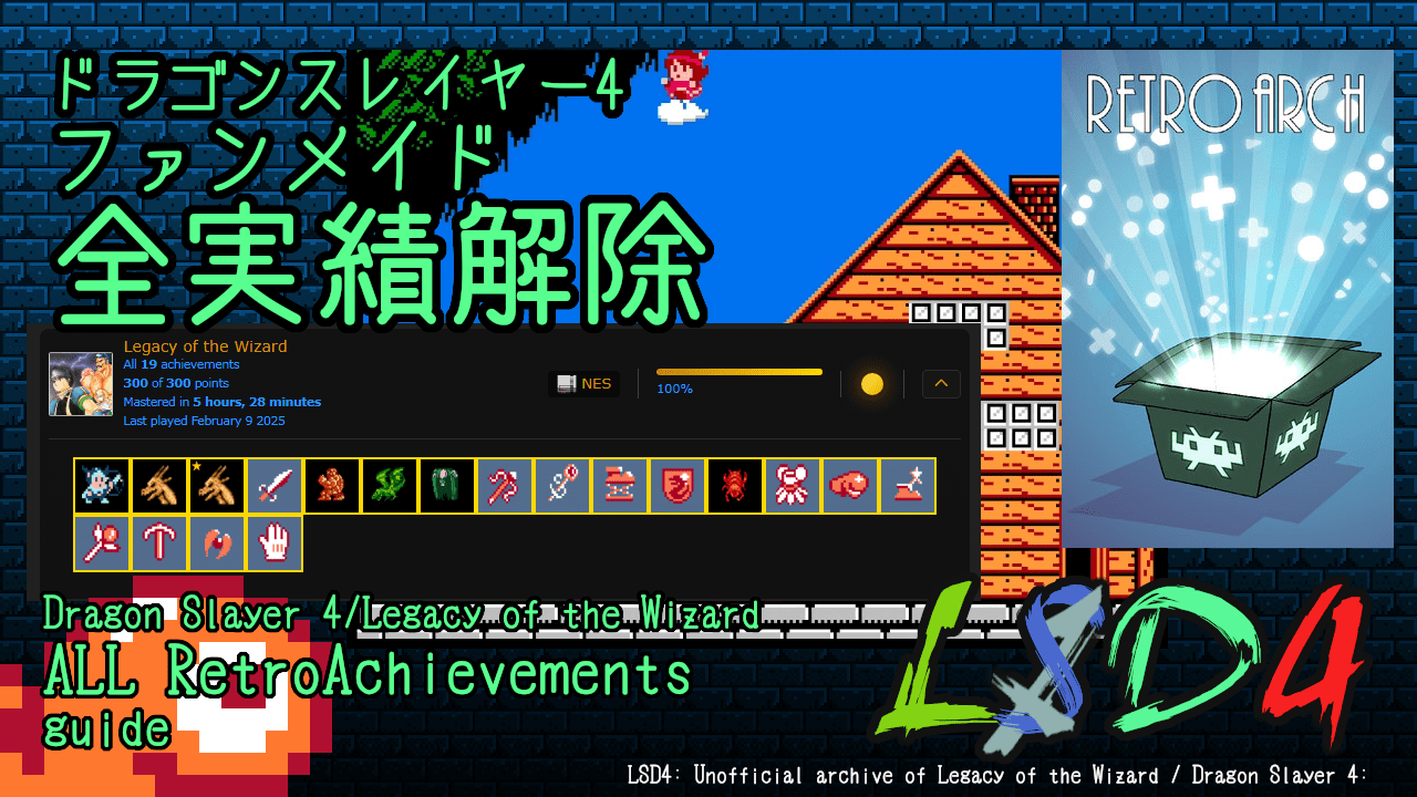 ファンメイド実績RetroAchievementsのLegacy of the WizardにSteamのRETROARCHで挑戦してみました。