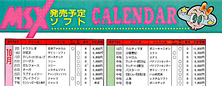 雑誌「MSX FAN」1987年12月号 MSX発売予定ソフトカレンダー