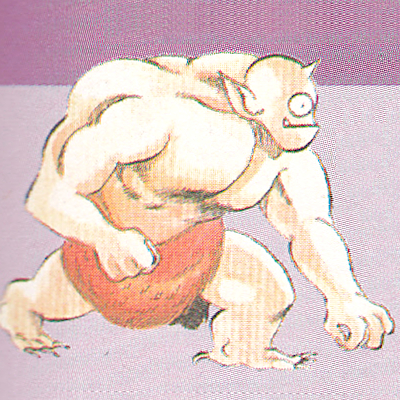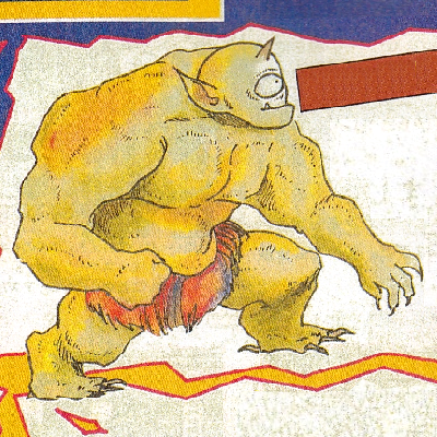 It was a race of giants from the mountains of northern Greece, who lived on earth before mankind flourished. It uses fire, has a certain amount of culture, and attacks its enemies with monstrous strength and collective action. It runs nearly 10 times faster than a human.ギリシャ北部の山岳地帯出身の巨人族で、人類の栄える前は地上に住んでいた。火を使い、ある程度の文化性があり、怪力と集団行動で敵に襲いかかる。走る速さは人の10倍近い。