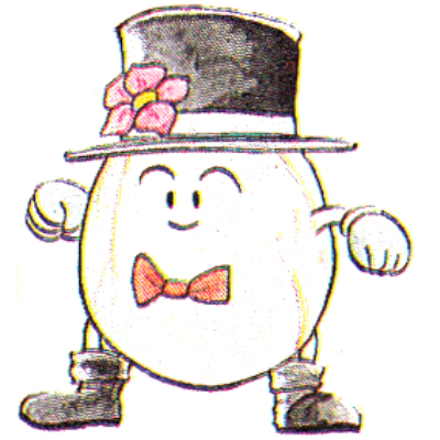 It is an egg monster with arms, legs and a face, which is strange enough, but it also wears a silk hat. Other than that, its identity is unknown !?手足と顔がついているだけでもおかしいのに、シルクハットまでかぶっているというタマゴのモンスター。それ以外は正体不明⁉