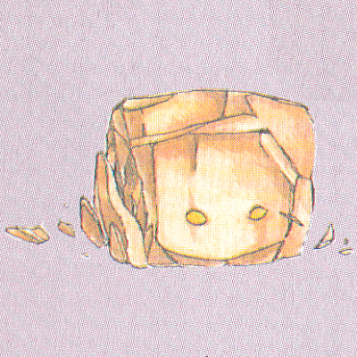 It is a monster in the shape of a rock. It's not particularly strong, but there's no shortage of people who approach it thinking it's an ordinary rock and get hurt.岩の形をしたモンスター。特に強いわけではないが、普通の岩だと思って近づいて、傷を負う人が後を絶たない。