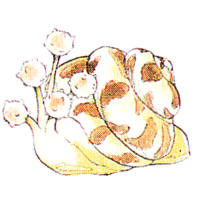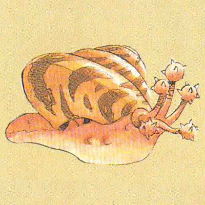 It is a giant snail that lives in the Amazon rainforest in South America. It is a primitive crustacean that has survived thanks to its shell. It has four venomous horns on its head and slowly approaches.南米、アマゾンの熱帯雨林に生息する巨大カタツムリ。原始時代の甲殻類が、その殻に守られて生き残ったもの。頭の4本の毒角(どくつの)を持ち、のっそりと近づいてくる。