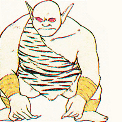 A giant so big that if you looked up at it it would tip you backwards. It has herculean strength.見あげたら、うしろにひっくり返ってしまいそうな大巨人。ものすごい怪力の持ち主だ。