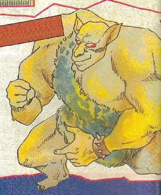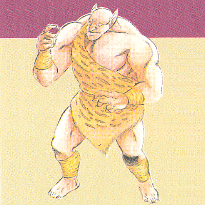It is a giant tribe from the mountainous region of northeastern Greece, with a low level of intelligence and extremely rude. When it gets hungry, it pounces on you at will. It has a lot of power and considerable jumping power.ギリシャ北東部の山岳地帯出身の巨人族で、知能があまり発達しておらず、きわめて粗暴。腹がへると手当たりしだいに襲いかかる。強力なパワーとかなりのジャンプ力あり。