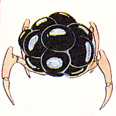 It is a space life form carried by a meteorite that fell to earth in ancient times. It has many soft cells in its body and its fluids are toxic. It can cling to walls and ceilings with its sharp claws.古代、地球に落ちたいん石によって運ばれてきた宇宙生命体だ。体にいくつものブヨブヨした細胞を持ち、その体液は有毒。鋭い爪で壁や天井にはりつくこともある。