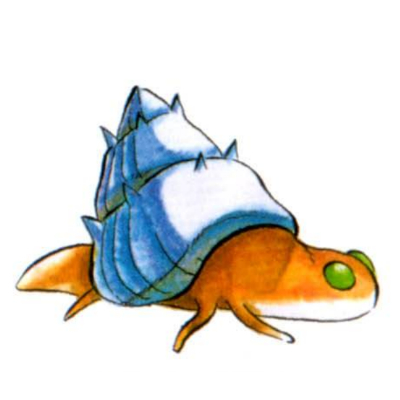 It is a docile land-dwelling shellfish that usually feeds on the moss of cave floors and ceilings. It turns violent when people get close to it and tries to stab people with the apex of its shell. The ceiling-dwelling Kirru is particularly dangerous as it descends from the ceiling towards people below. However, its movements are monotonous and its trajectory is easy to predict.通常は床や天井の苔を食べている、おとなしい陸に住む貝類だが、人が近付くと狂暴化し、貝殻の頂点の部分で人を刺そうとする。特に天井に住むキイルルは、天井から下にいる人間めがけて降ってくるので、非常に危険だ。ただし動きは単調で、先を簡単に読める。