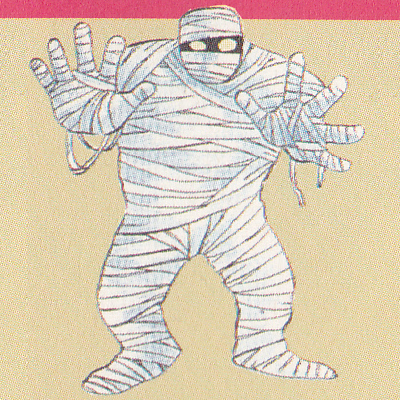 It is found in the deserts of central Peru in South America. It was originally the mummy of the Inca, but has been revived by magic. It follows you at a slow speed.南米、ペルー中部の砂漠地帯に生息する。もとはインカのミイラだったが、魔法の力でよみがえったもの。ゆっくりとしたスピ-ドでウロウロと追いかけてくる。