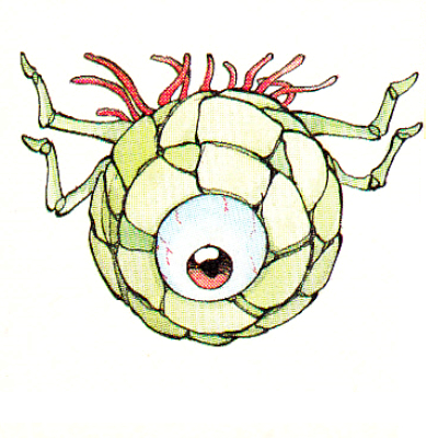 Like Kirru, it lives in the ceiling, and when it sees humans, it will fall and attack it. Its hull is hard as a rock and will not be able to recover if a human is struck by it for real. It is not clear how it returns to the ceiling.キイルル同様、天井に住み、人間を見かけると降ってきて攻撃を加える。その外皮は岩のように堅いために、まともに体当りを食らうと立ち直れない。どうやって天井に戻るのかは明らかでない。