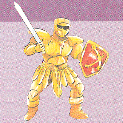 It was the Knight of Andorra, a small country between France and Spain, nicknamed the Dark Knight. The group. It covers its entire body in thick armor and holds a sword and shield in its hands, belligerent and agile in its fight.フランスとスペインにはさまれた小国、アンドラのナイトで、闇の騎士(ナイト)と異名をとった一団。全身を厚い鎧で覆い、手には剣と盾を持ち、好戦的で、機敏に闘いを挑む。