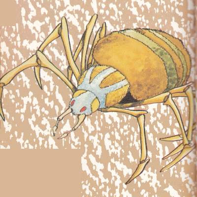 It is a tarantula, a venomous spider that lives in the Amazon jungle in South America that has been transformed into a giant by the magical power of a wizard.It appears as a guardian to the person who has taken the first crown. It uses its sharp fangs and the venom it spits from its mouth to paralyze its prey and devour its prey's body. It's a formidable foe.