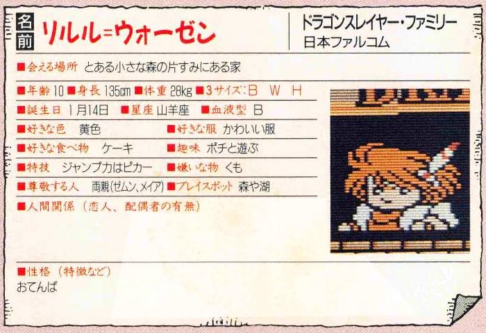 ドラゴンスレイヤー4 ドラスレファミリー キャラクター図鑑「リルル=ウォーゼン」