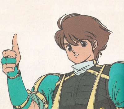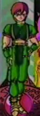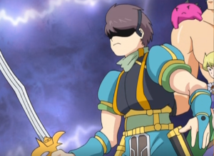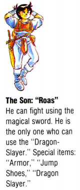 "I'm Royas. I am the most good swordsman, and only one person can use Dragon Slayer."「ロイアスです。剣士で剣さばきの一番うまいぼくは、唯一人ドラゴンスレイヤーを手にすることができるんだ。」