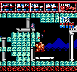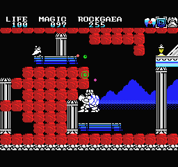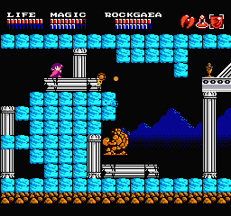 魔法の力で軽めの石を押し飛ばすことができる。これによって飛ばされた石は、反対側の壁に当たってはね返ってくる。この石でモンスターを倒せる。