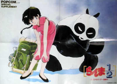 The front side is a full-color Ranma 1/2 illustration, and the back side is a 2-colored Dragon Slayer 4 map.