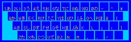 MSX2英語版キーボードから日本語版パスワードを入力するための文字変換表(JIS配列)