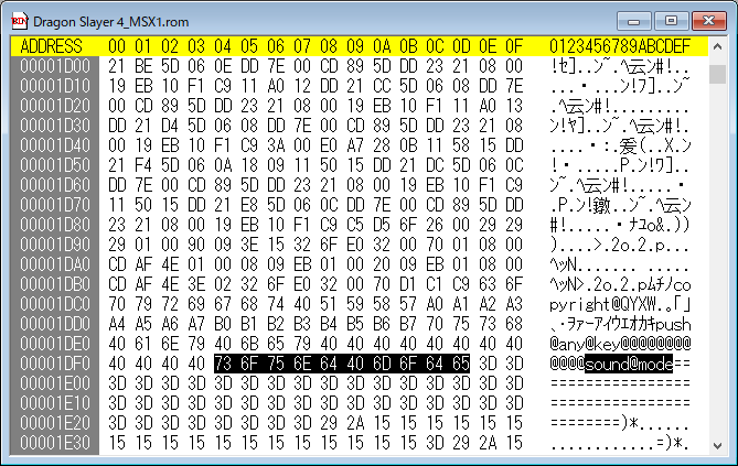 MSX1版のROM内には「SOUND MODE」という文字列が見つかっています。