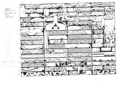 開発中マップが印刷された書類。どの機種とも異なるエリアがいくつもある。