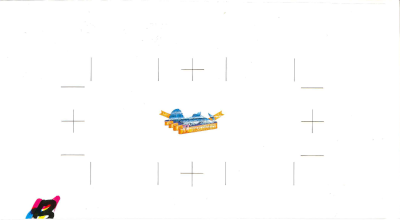 This is colour proof of the logo to be printed on the manual, with a colour sample printed at the bottom left. The size of this paper is about the of a postcard.マニュアルに印刷するロゴの色校正で、左下に色見本が印刷されている。原稿のサイズはハガキ程度。