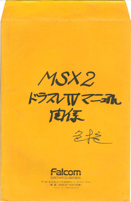 ドラゴンスレイヤー4 ドラスレファミリー MSX2マニュアル関係・色校 封筒
