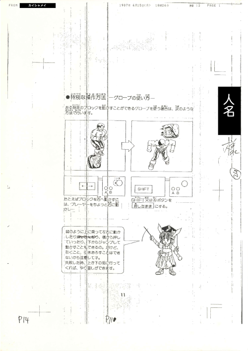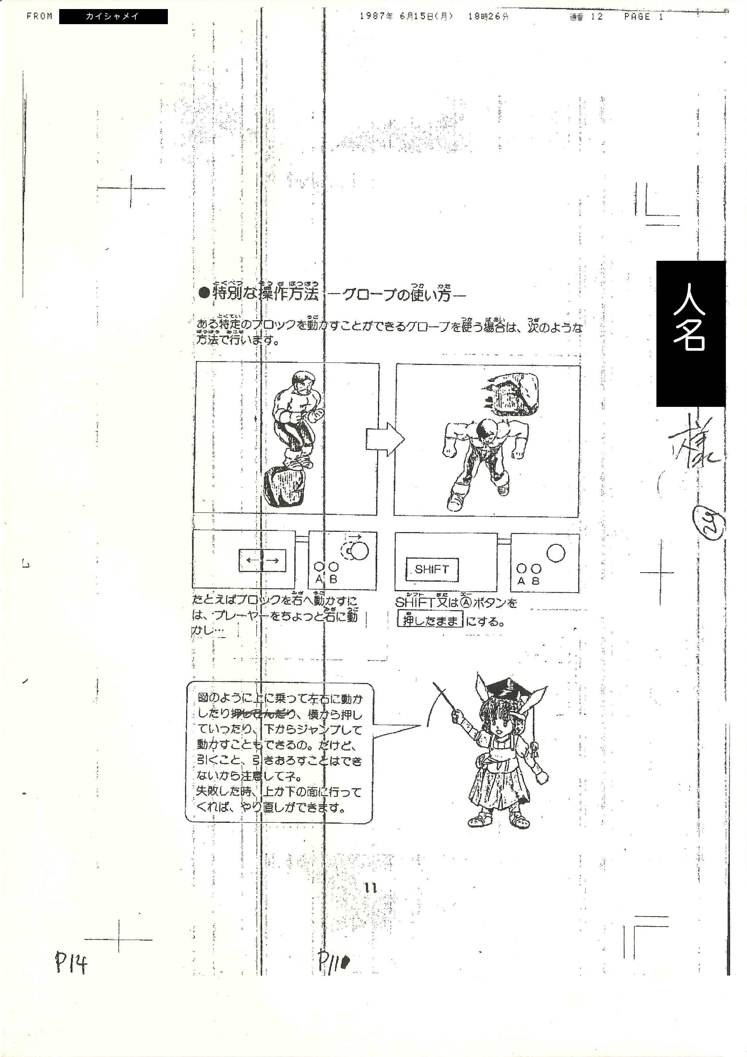 ドラゴンスレイヤー4 ドラスレファミリー MSX2マニュアル p.11 手書き原稿・校正FAX