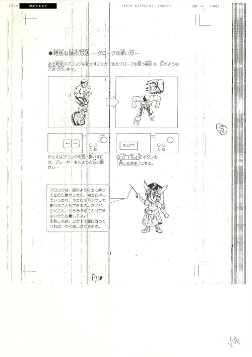 Dragon Slayer 4 MSX2 manual p.11 handwritten proofing document