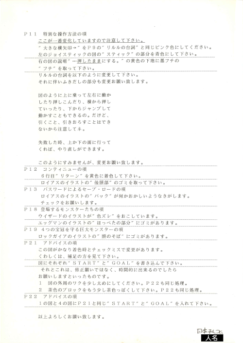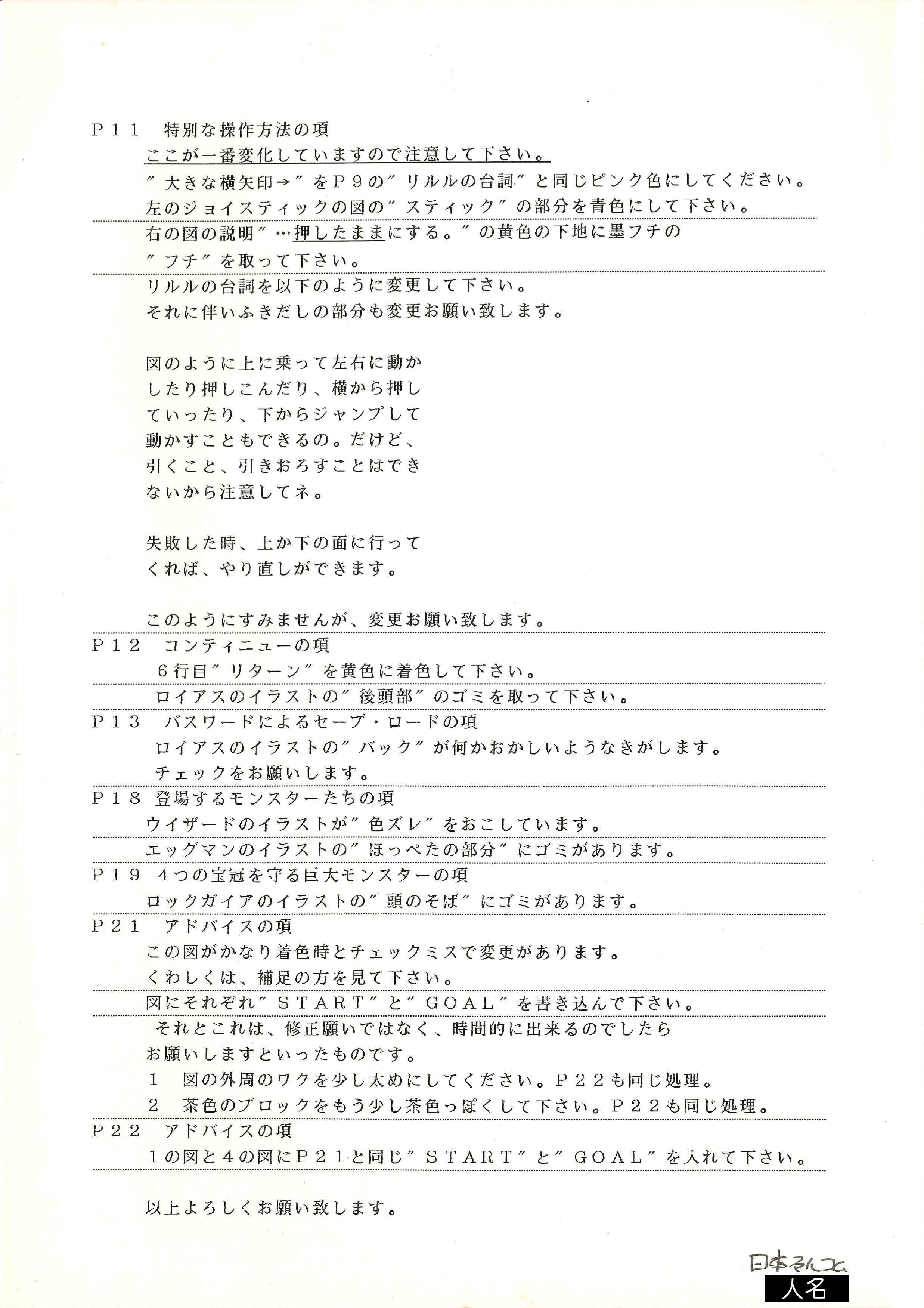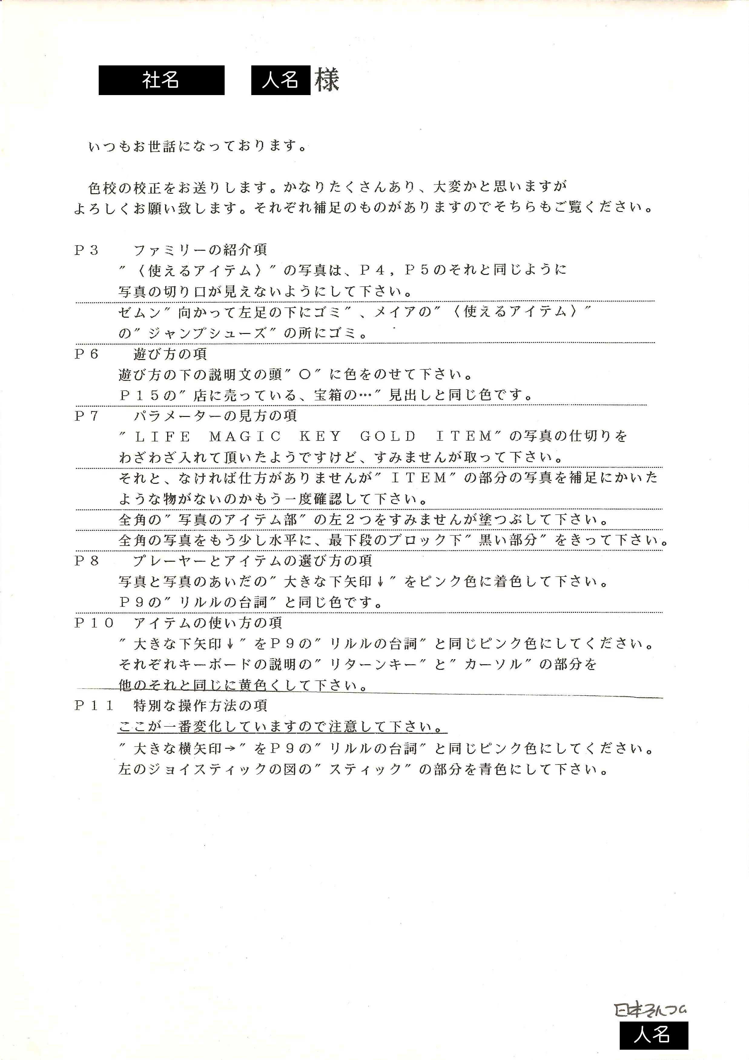 ドラゴンスレイヤー4 ドラスレファミリー MSX2マニュアル色校依頼文書